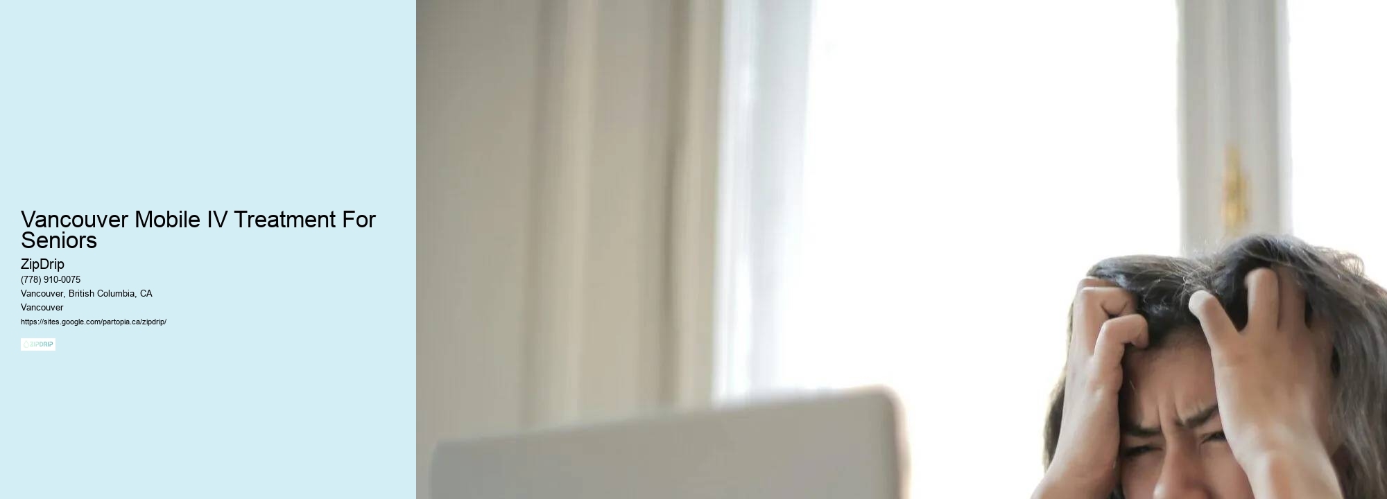 Remember, ZipDrip comes to you, so all you need to do is relax in the comfort of your home or office. Another vital player is Vitamin D. Packed with high doses of Vitamin C, Zinc, and antioxidants, these drips help fortify your body's natural defenses, speeding up your recovery time. After you've chosen your service and scheduled a time, you'll need to fill out a brief health questionnaire. Zipdrip's mobile IV therapy service in Vancouver Mobile IV Treatment For Seniors customizes treatments to meet your unique health needs and goals.
